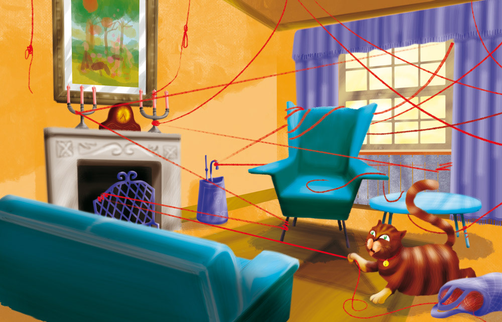 Some illustration of the scholastic reader "Fat Cat's Busy Day" for the series: Helbling Young Reader. © Helbling Languages 2011.